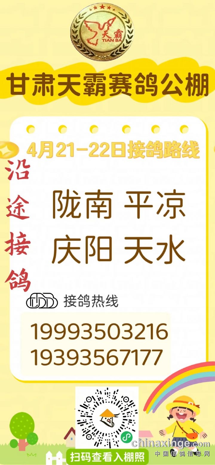 甘肃天霸赛鸽公棚4月21日接鸽路线