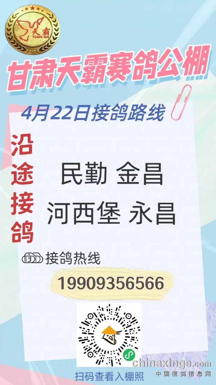 甘肃天霸赛鸽公棚4月23日接鸽路线