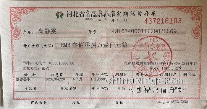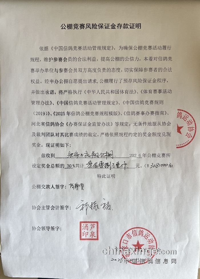 庆翔公棚2026年风险保证金已存入三方共管账户