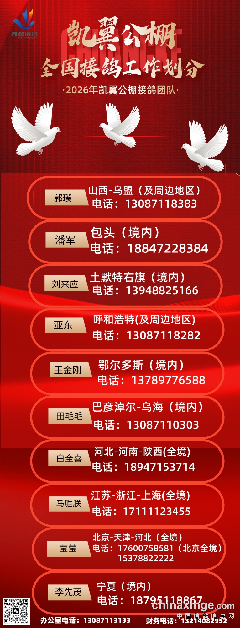 内蒙古凯翼公棚2026年全国接鸽工作划分!