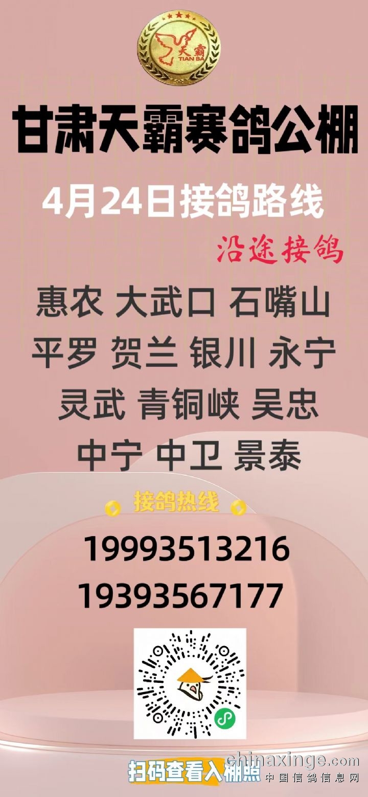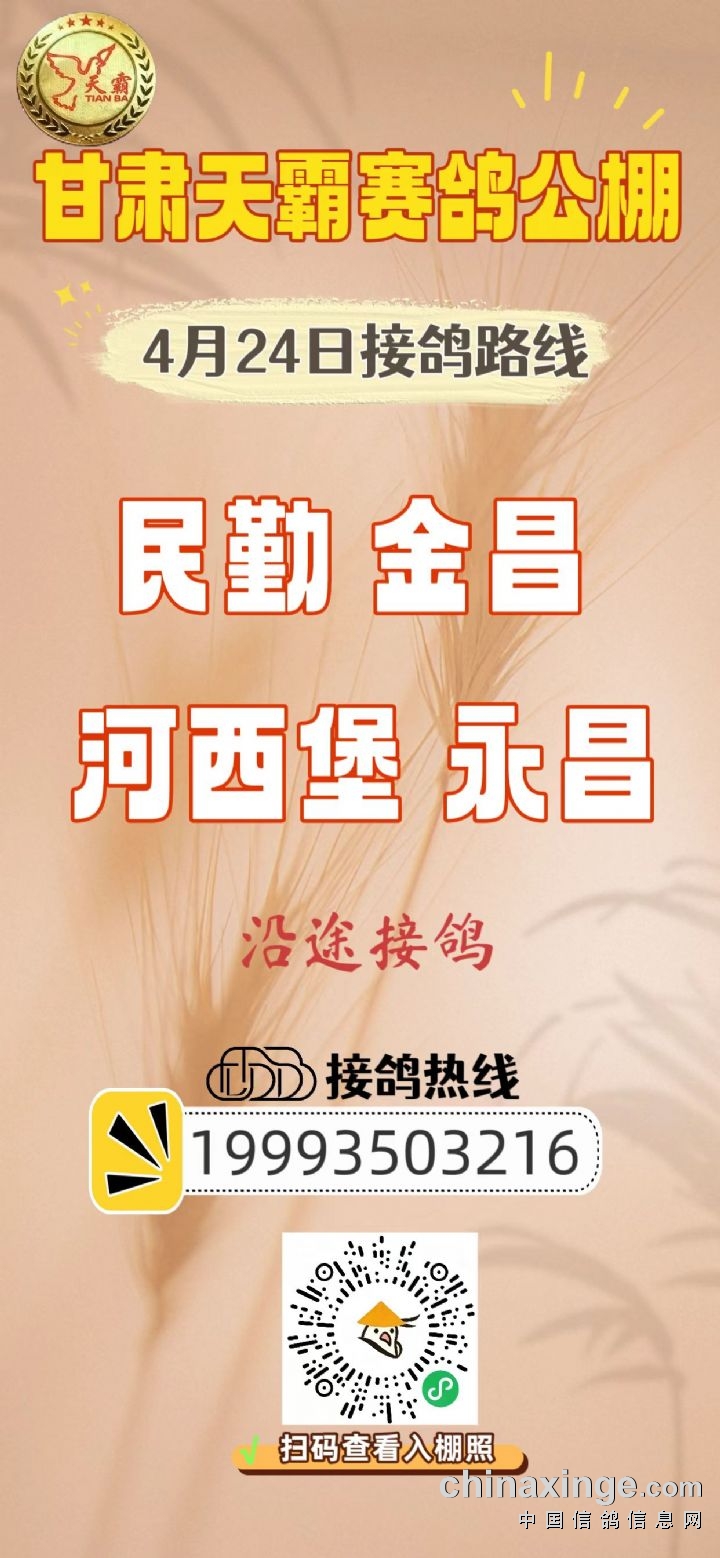 甘肃天霸赛鸽公棚4月24日接鸽路线