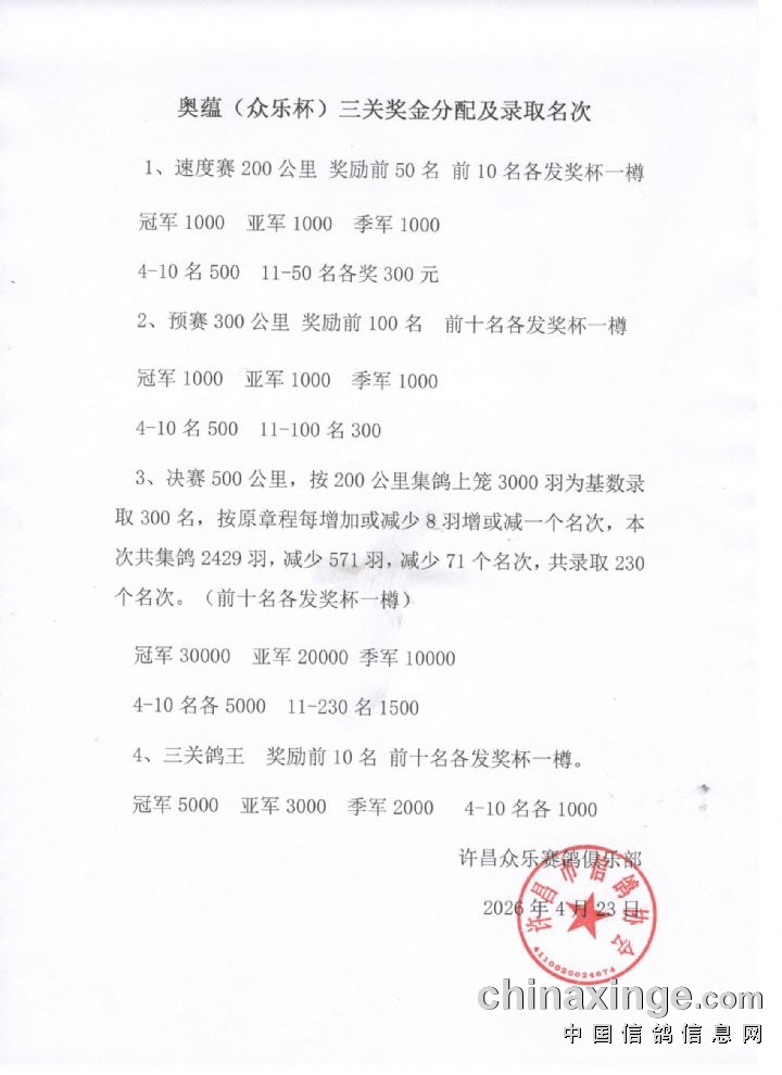 奥蕴(众乐杯)第二关比赛集鸽通知