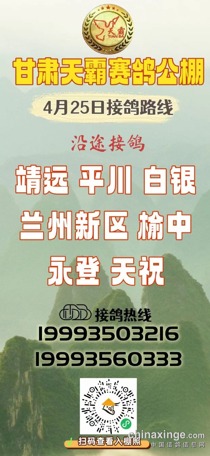 甘肃天霸赛鸽公棚4月25日接鸽路线