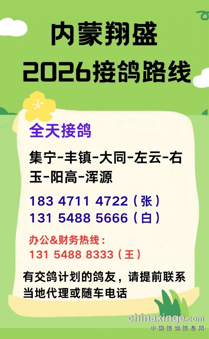 内蒙翔盛公棚 2026年收鸽明细(如需更改请联系13154888333)---不断更新中