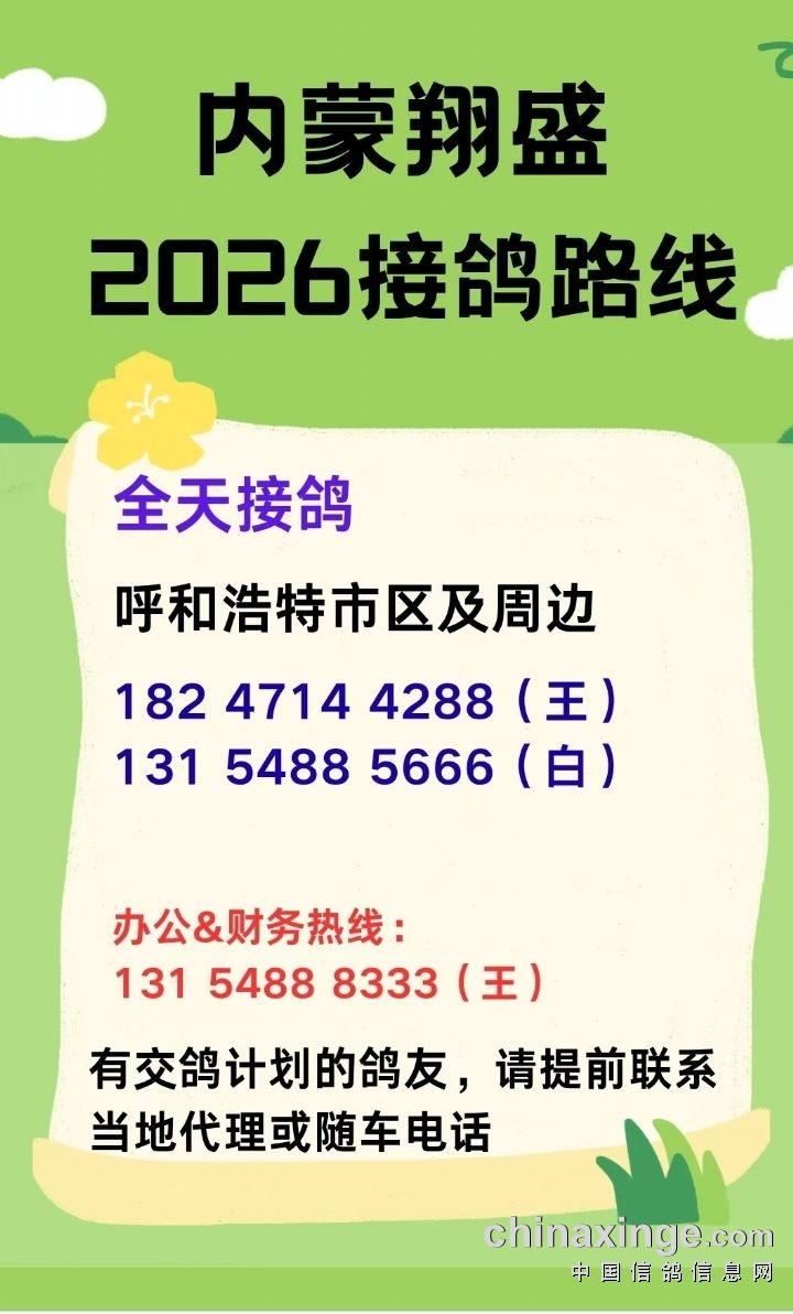 内蒙翔盛公棚 2026年收鸽明细(如需更改请联系13154888333)---不断更新中