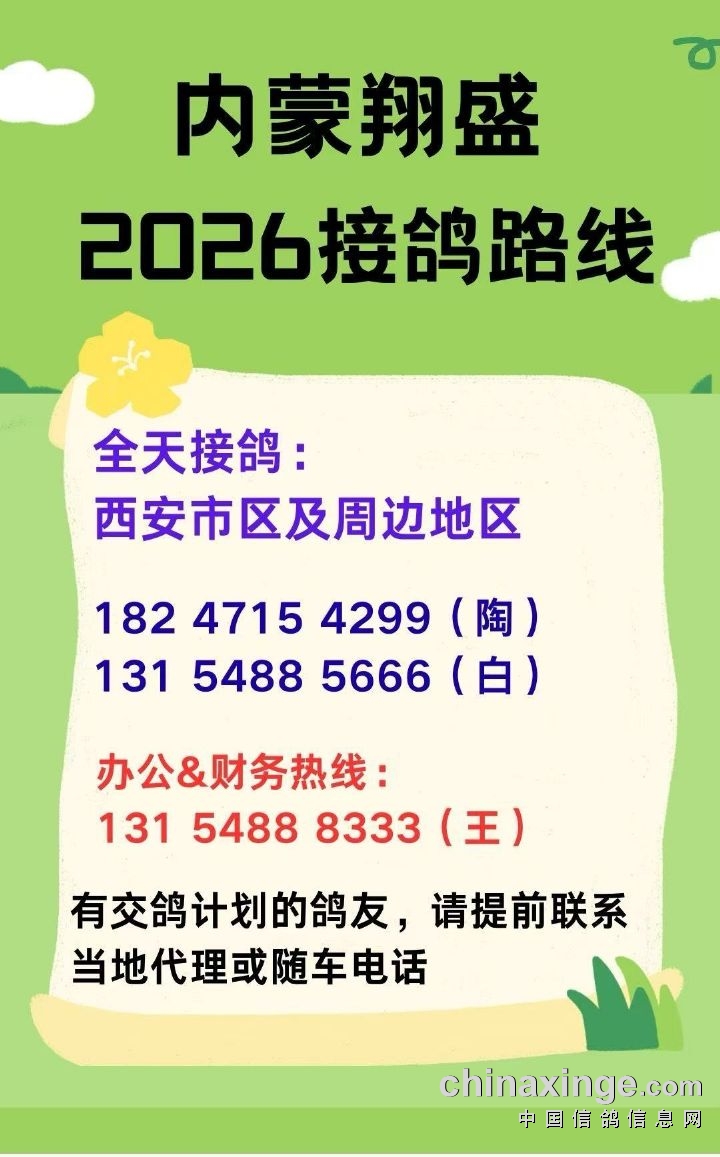 内蒙翔盛公棚 2026年收鸽明细(如需更改请联系13154888333)---不断更新中