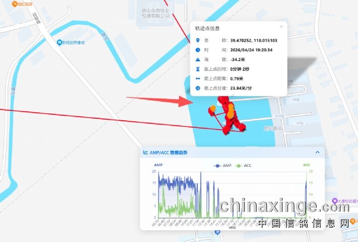 后该羽赛鸽的飞行轨迹于2026年/04/2418点00分定位显示在(汇通路交叉路口)康美牙科附近,该羽赛鸽的飞行轨迹有沿道路移动迹象,飞行的海拔仅为-18.5米,很明显这并不是赛鸽正常的飞行高度与飞行轨迹。