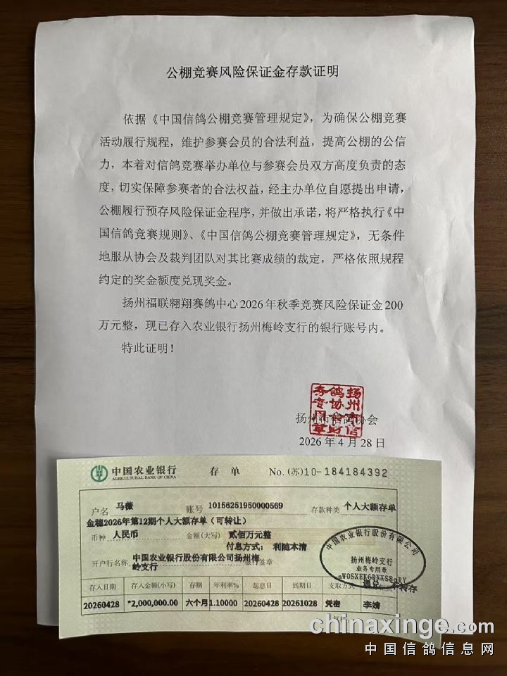扬州福联翱翔竞赛保证金存款证明