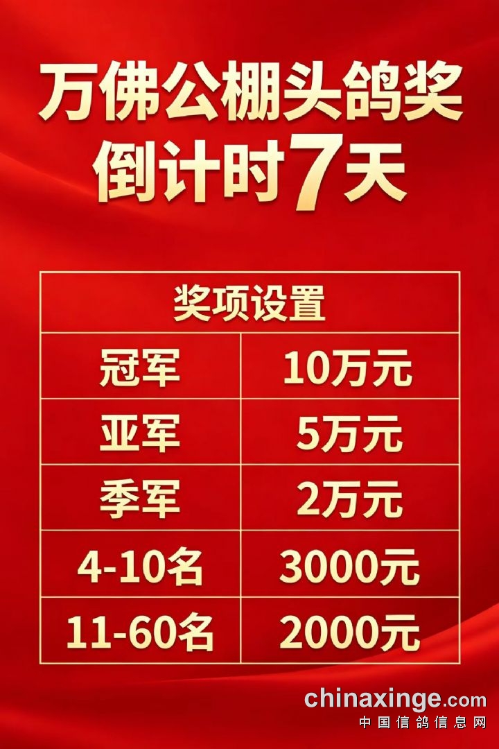 万佛公棚头鸽奖倒计时7天