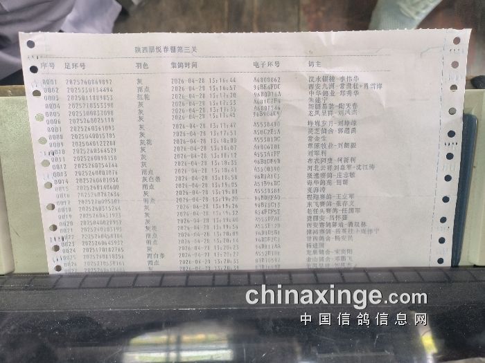 陕西朋悦春棚第三关集鸽清单(按时间)