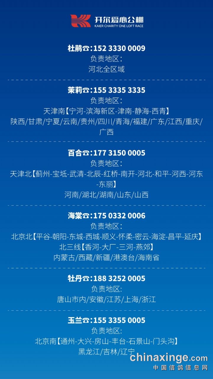 开尔爱心公棚(大春棚)第三关将进行人工逐羽扫描,并由唐山市信鸽协会裁判组亲临现场监督此次集鸽、装笼、开笼、归巢全过程,同时我们将委托飞鸽传媒对此次比赛进行全程网络视频直播。