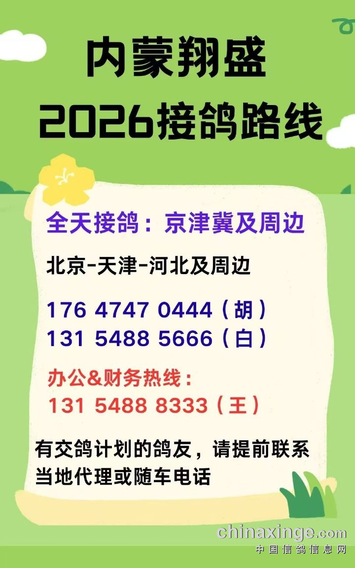 内蒙翔盛公棚 2026年收鸽明细(如需更改请联系13154888333)---不断更新中
