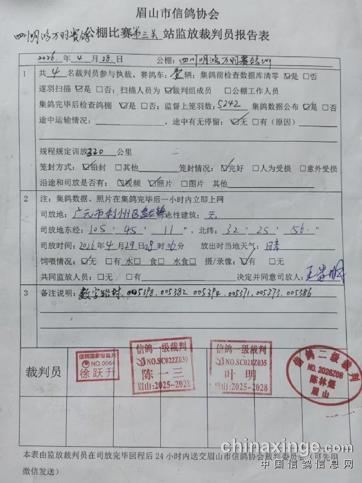 四川明鸿万羽赛鸽城第三关外围核对公告