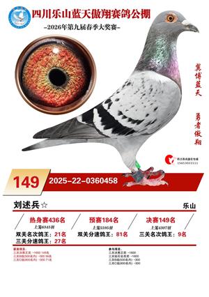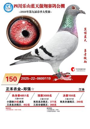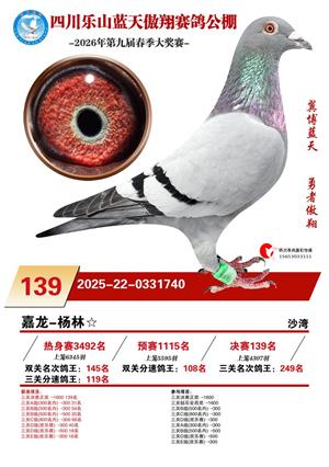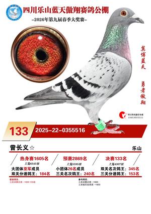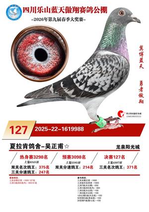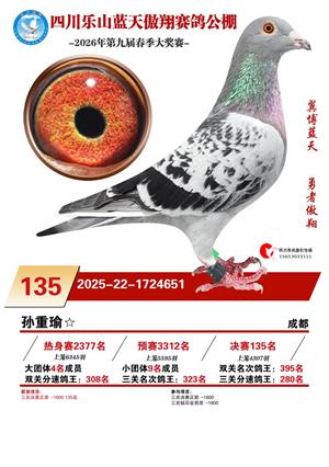 蓝天傲翔赛鸽公棚2026年春决赛获奖鸽赏析