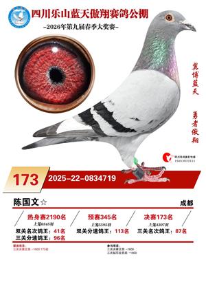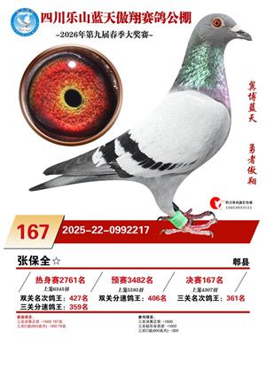 蓝天傲翔赛鸽公棚2026年春决赛获奖鸽赏析