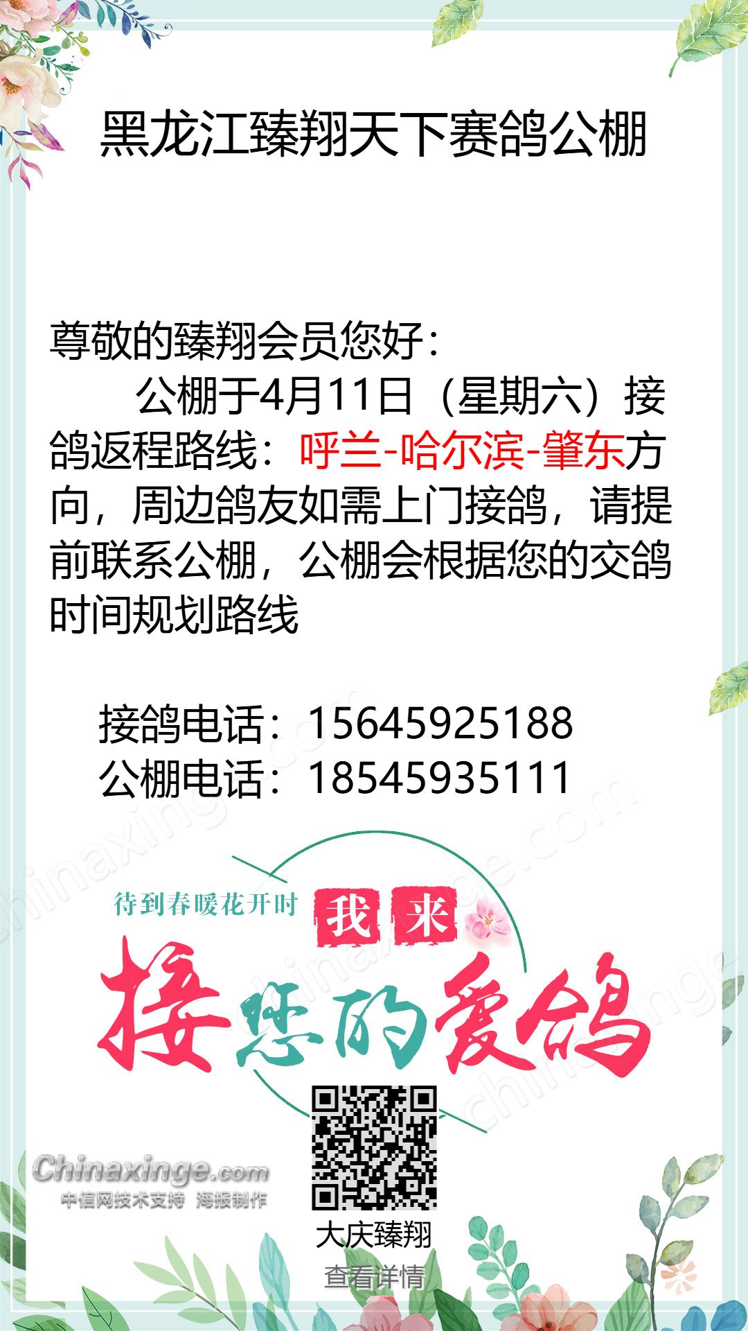 臻翔公棚于4月4日接鸽路线:呼兰 五站 哈尔滨 肇东方向