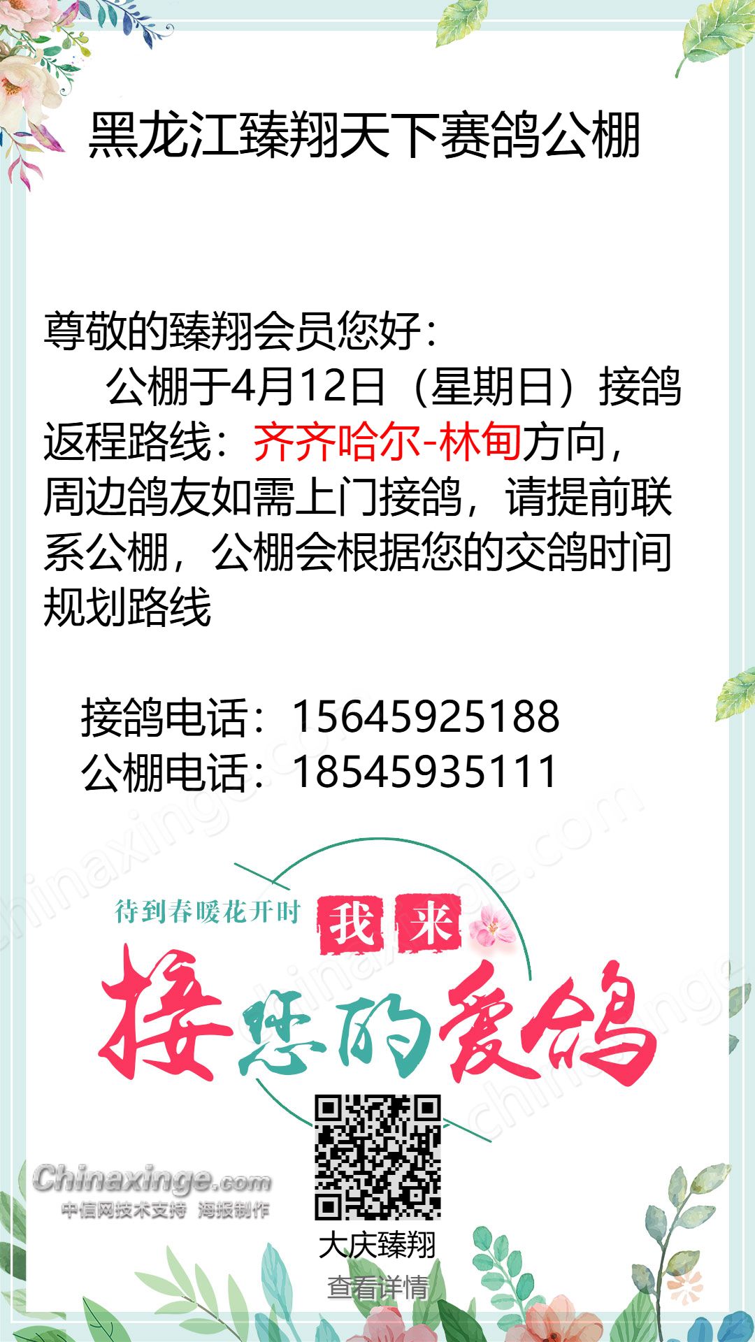 臻翔公棚于4月5日接鸽路线:齐齐哈尔 林甸方向
