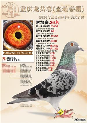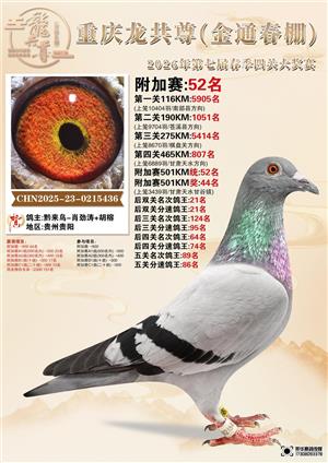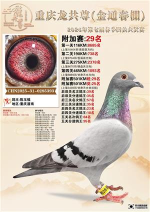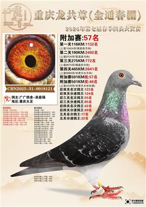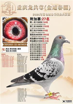 重庆龙共尊(金通春棚)第七届附加赛优胜鸽照片
