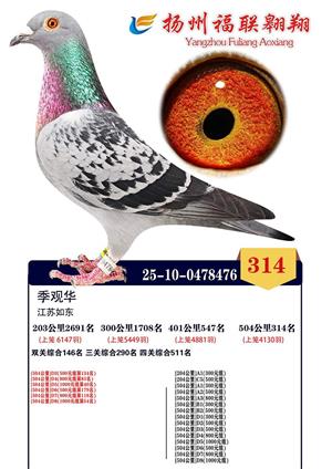扬州福联翱翔决赛1-800名获奖鸽照片