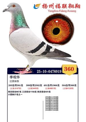 扬州福联翱翔决赛1-800名获奖鸽照片