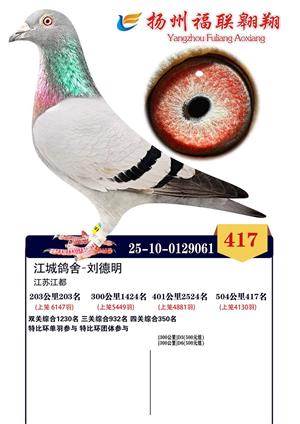 扬州福联翱翔决赛1-800名获奖鸽照片