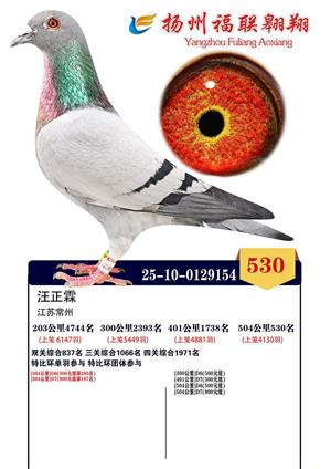 扬州福联翱翔决赛1-800名获奖鸽照片