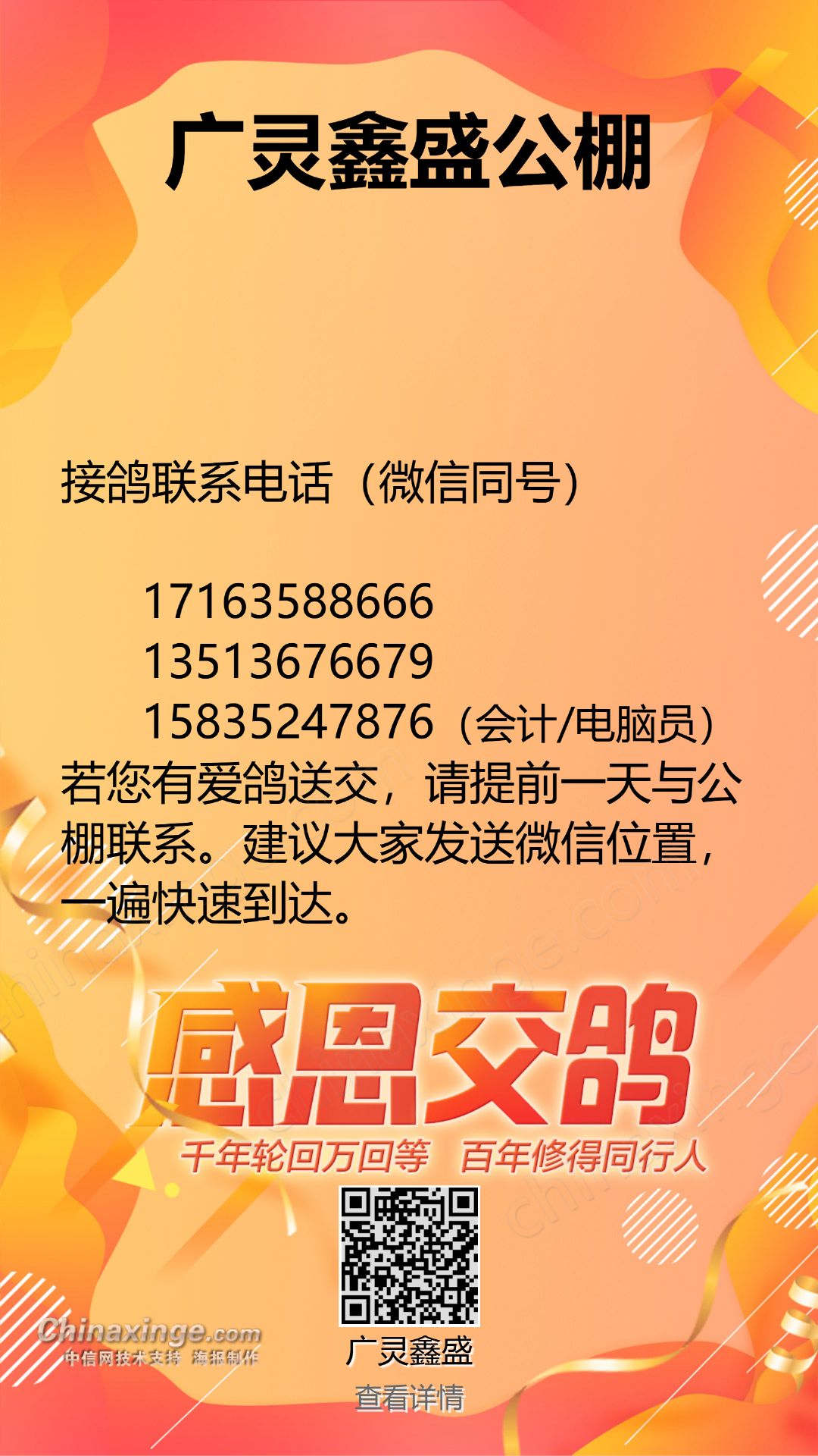 广灵鑫盛公棚接鸽联系电话