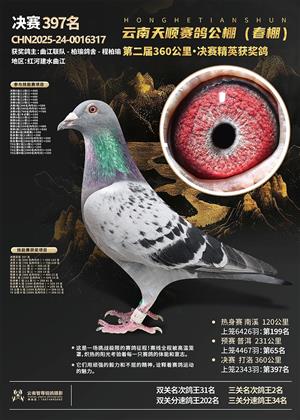 云南红河天顺赛鸽中心决赛获奖鸽照片1-500名