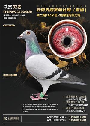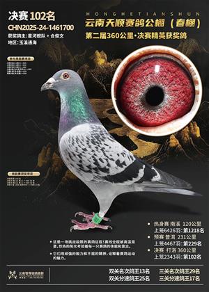 云南红河天顺赛鸽中心决赛获奖鸽照片1-500名