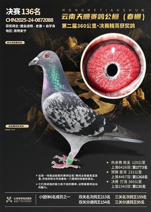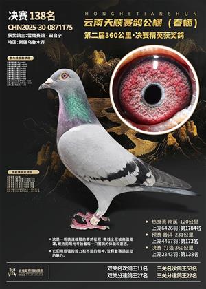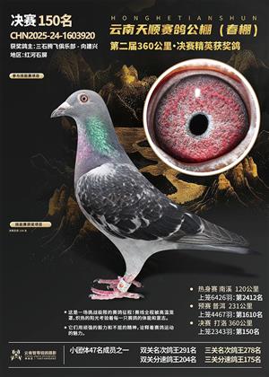 云南红河天顺赛鸽中心决赛获奖鸽照片1-500名