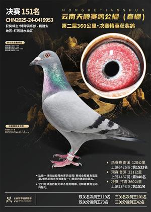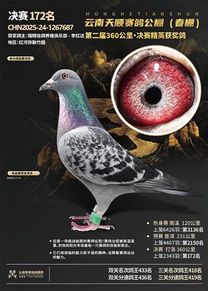 云南红河天顺赛鸽中心决赛获奖鸽照片1-500名