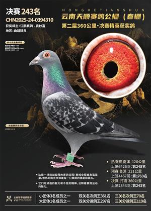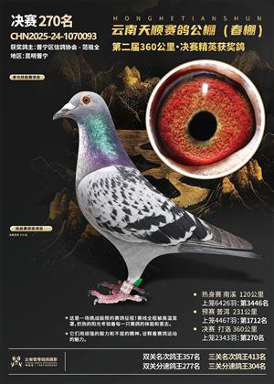 云南红河天顺赛鸽中心决赛获奖鸽照片1-500名