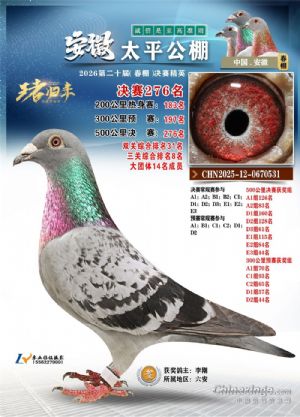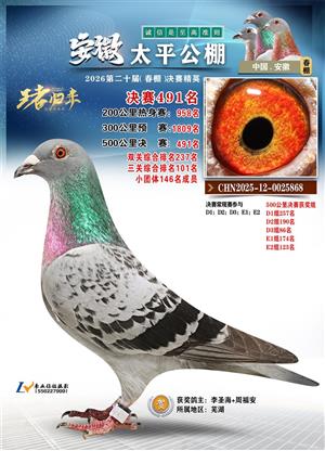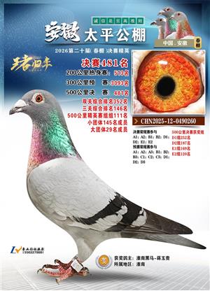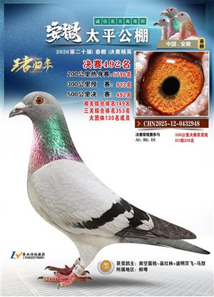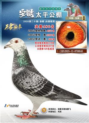 安徽蚌埠太平赛鸽公棚2026春决赛获奖鸽图片赏析