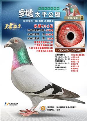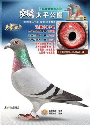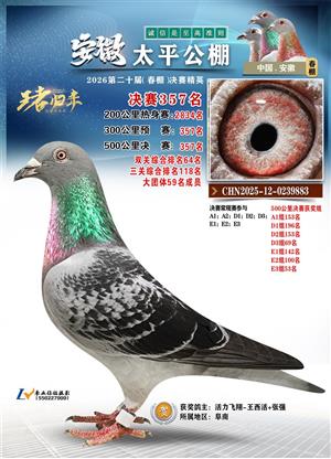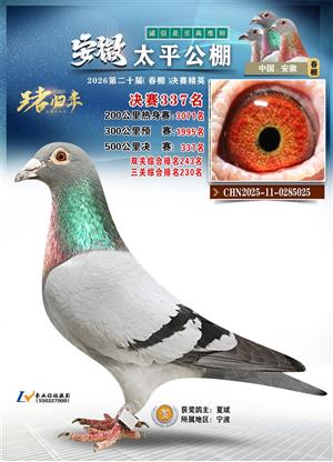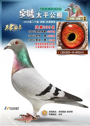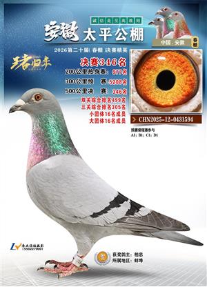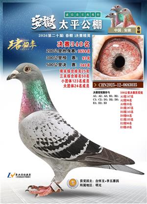 安徽蚌埠太平赛鸽公棚2026春决赛获奖鸽图片赏析