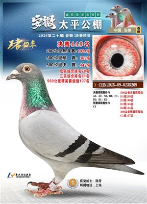 安徽蚌埠太平赛鸽公棚2026春决赛获奖鸽图片赏析