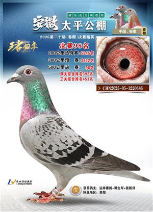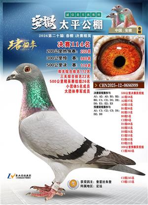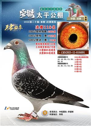 安徽蚌埠太平赛鸽公棚2026春决赛获奖鸽图片赏析