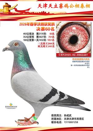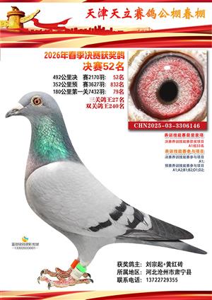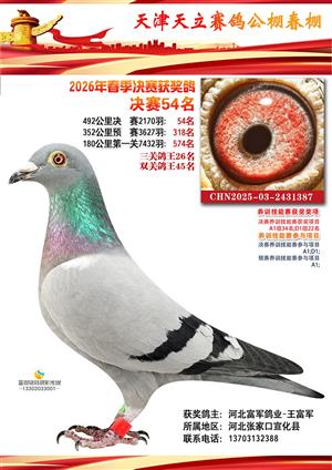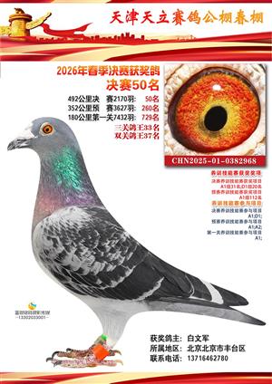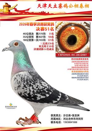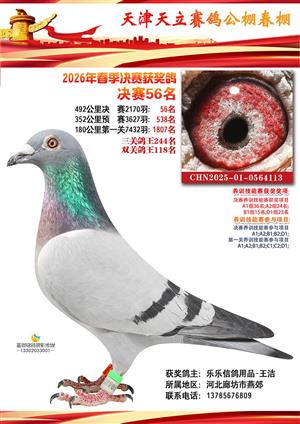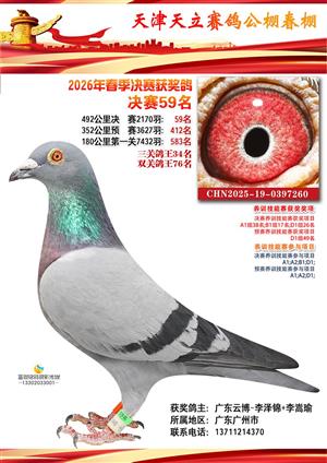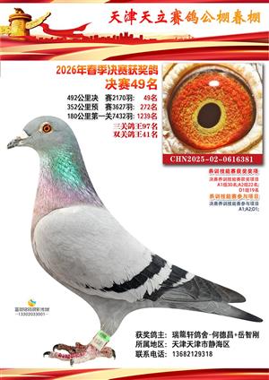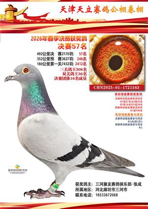 天津天立春棚2026年赛事决赛获奖鸽(1-708名)