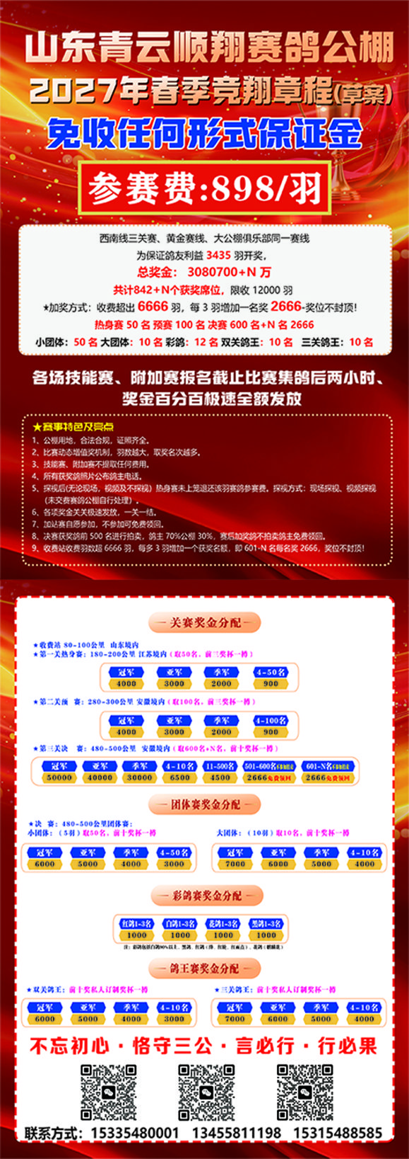 图片标题:山东青云顺翔公棚2027首届春赛章程