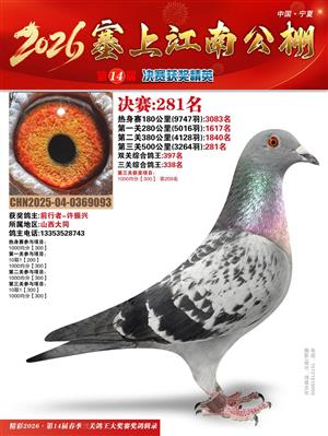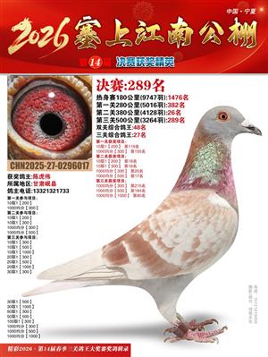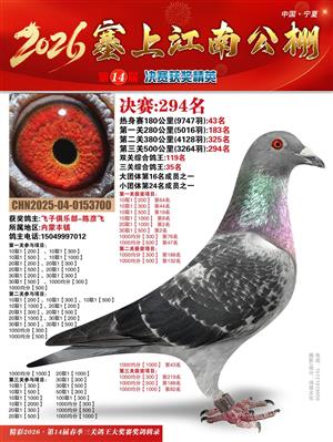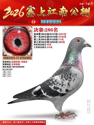 宁夏塞上江南职业赛鸽公棚2026春决赛获奖鸽照片