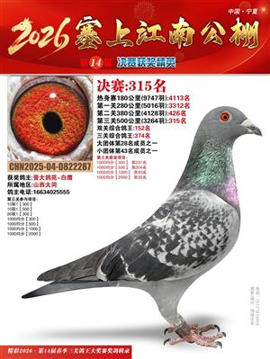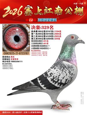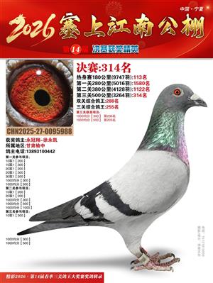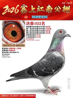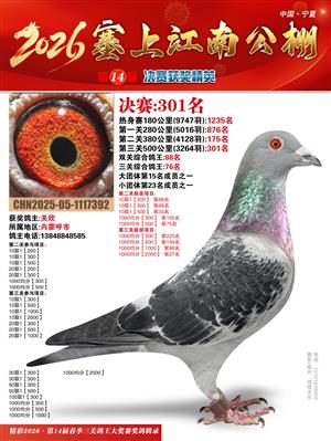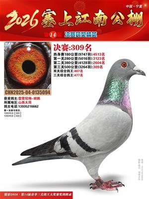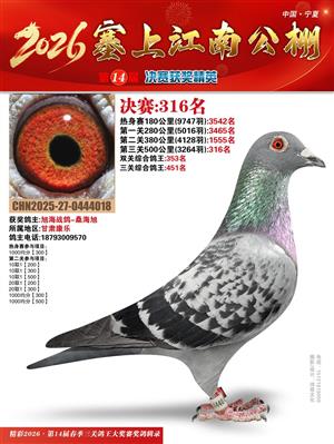 宁夏塞上江南职业赛鸽公棚2026春决赛获奖鸽照片