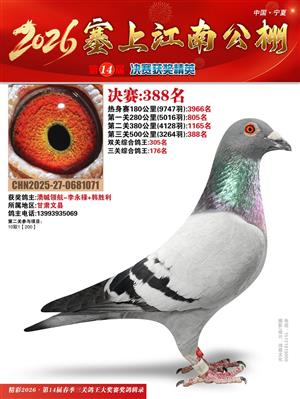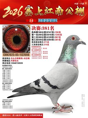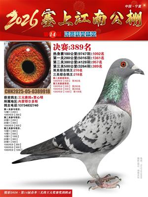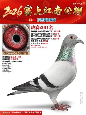 宁夏塞上江南职业赛鸽公棚2026春决赛获奖鸽照片