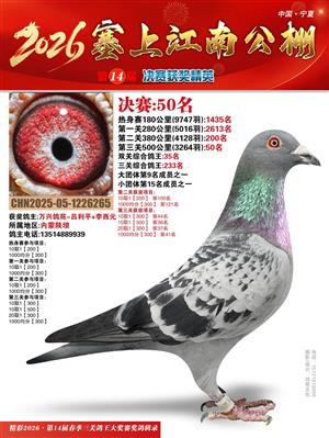 宁夏塞上江南职业赛鸽公棚2026春决赛获奖鸽照片