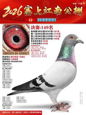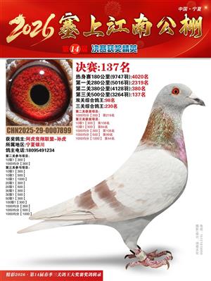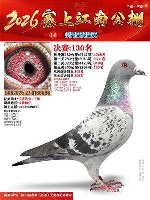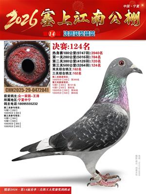 宁夏塞上江南职业赛鸽公棚2026春决赛获奖鸽照片
