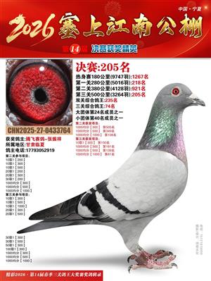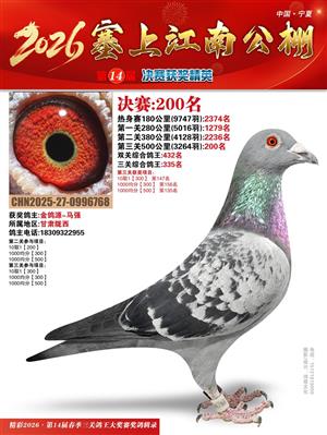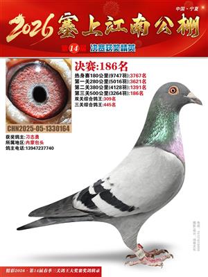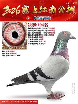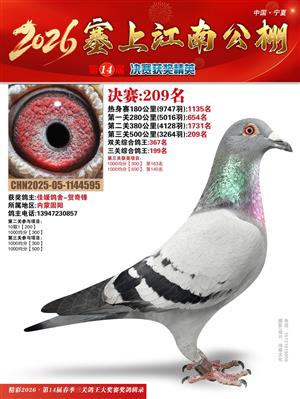 宁夏塞上江南职业赛鸽公棚2026春决赛获奖鸽照片
