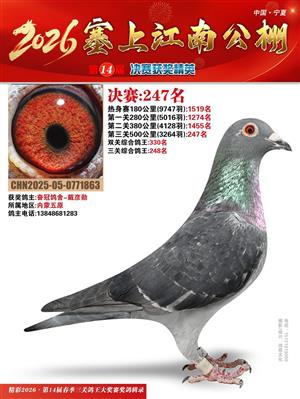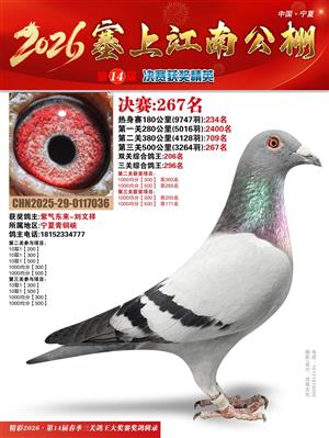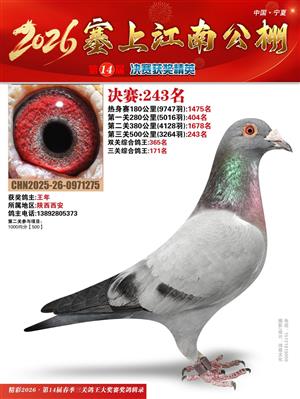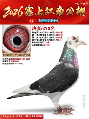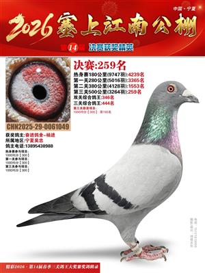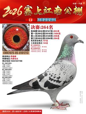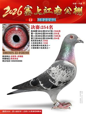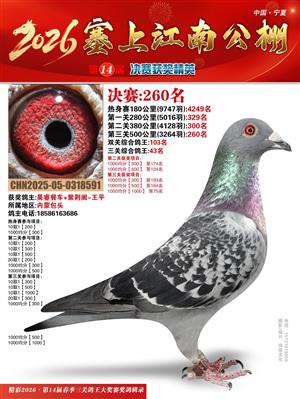 宁夏塞上江南职业赛鸽公棚2026春决赛获奖鸽照片