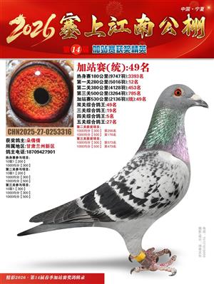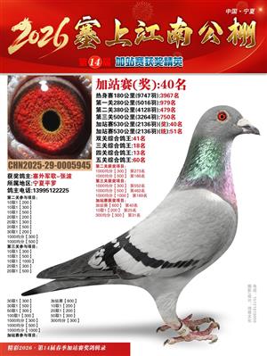 宁夏塞上江南职业赛鸽公棚2026春加站赛获奖鸽照片