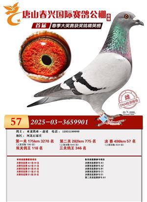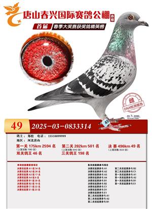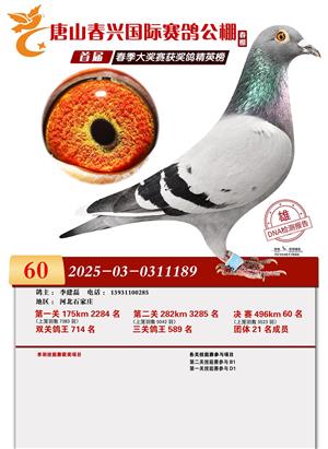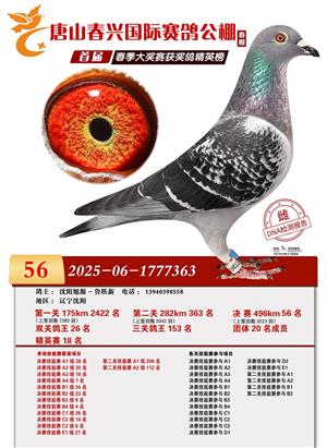 唐山春兴赛鸽公棚(春棚)2026年首届春季竞赛获奖鸽