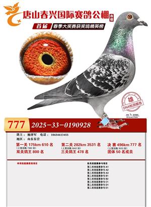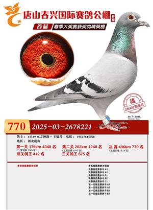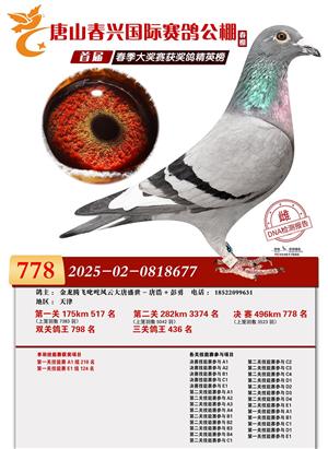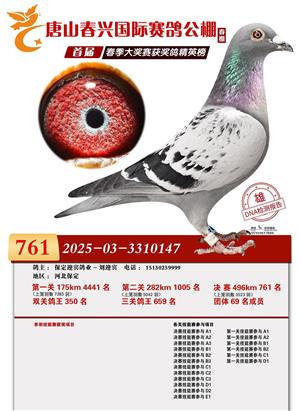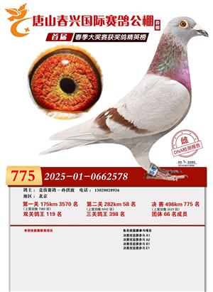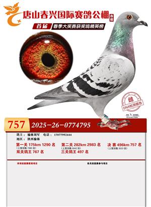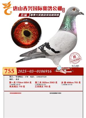 唐山春兴赛鸽公棚(春棚)2026年首届春季竞赛获奖鸽