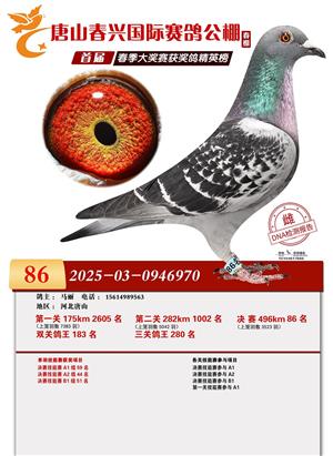 唐山春兴赛鸽公棚(春棚)2026年首届春季竞赛获奖鸽