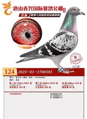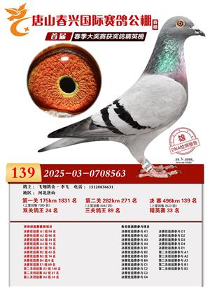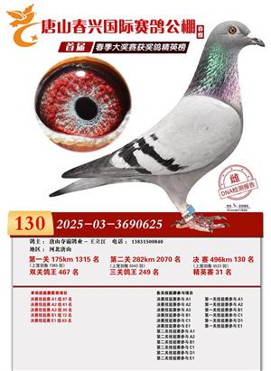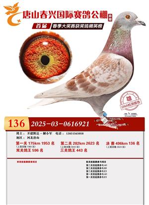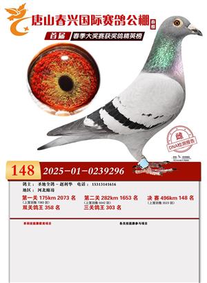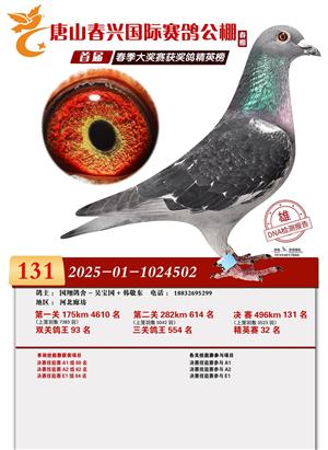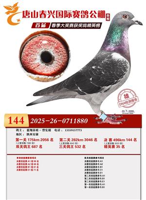 唐山春兴赛鸽公棚(春棚)2026年首届春季竞赛获奖鸽